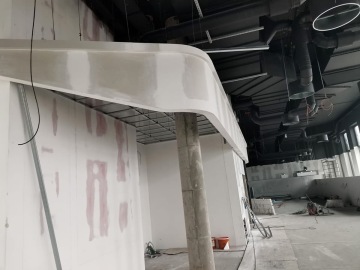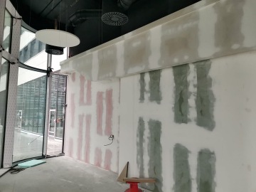 Na tuto zakázku jsme dodali kilometry kluzných spojů, bez kterých se dnes neobejde téměř žádná novostavba, dále pak světelné rampy, zakončení podhledů a přechody na minerální podhledy. V jídelně tohoto administrativního centra je náš další výrobní majstrštyk - atypická designová konstrukce s ladně zvlněnými podhledovými pruhy umístěna pod stropem.