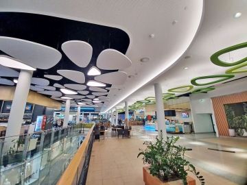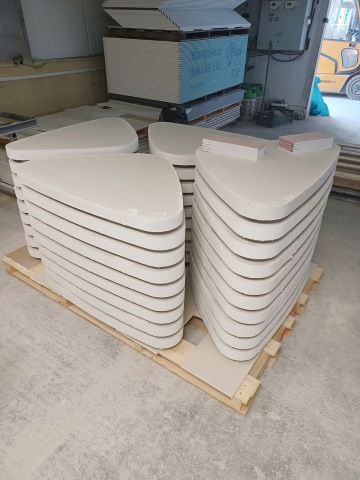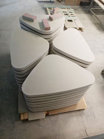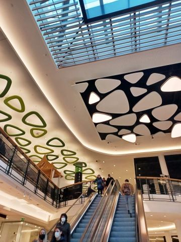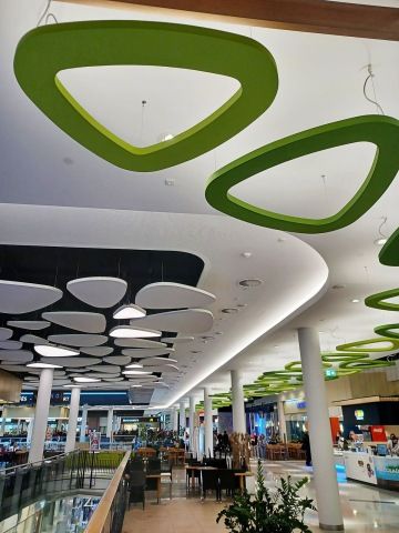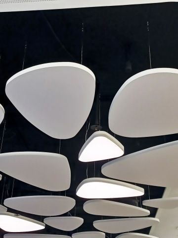 Už jste viděli kulatý trojúhelník? Vyráběli jsme je v různých barvách pro pražské OC Palladium jako závěsné soliterní akustické prvky.